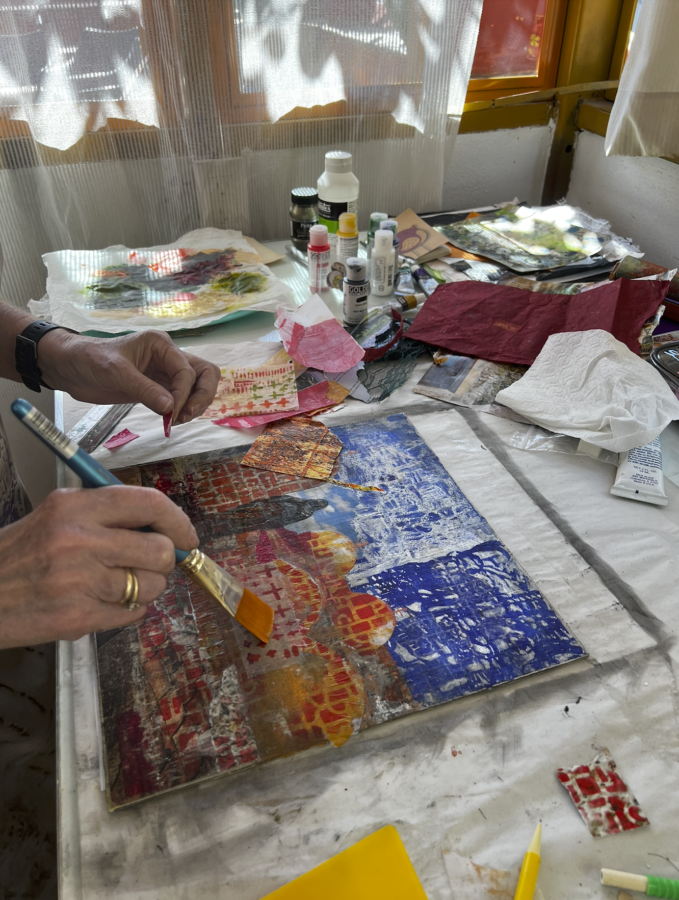 “I have been taking photography, ceramics, encaustic, cold wax, painting, mixed media and collage classes for over 20 years at Anderson Ranch Arts Center in Snowmass Village, CO, Lill Street Art Center in Chicago, IL, Santa Fe Photography Workshops and in San Miguel at various artists’ studios. I was very excited to learn about Meryl Truett’s Mixed Media Workshop this spring. It was a fun class with great instruction. I was very pleased with the work that I created. Her studio space was perfect for a workshop!! I am excited to take another class when I am back in town. I highly recommend the experience.”